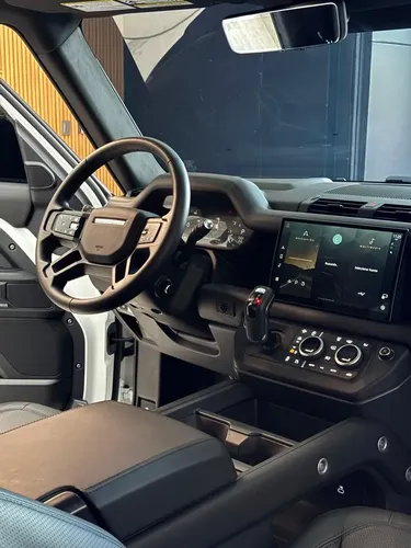 El diseño exterior en color blanco no solo resalta su robustez, sino que también ofrece una estética moderna y atractiva, perfecta para el entorno urbano de Caracas, especialmente en la zona de Chacao. Este Defender es la opción perfecta para familias o aventureros que buscan un vehículo versátil, capaz de manejar tanto el día a día como escapadas de fin de semana.
